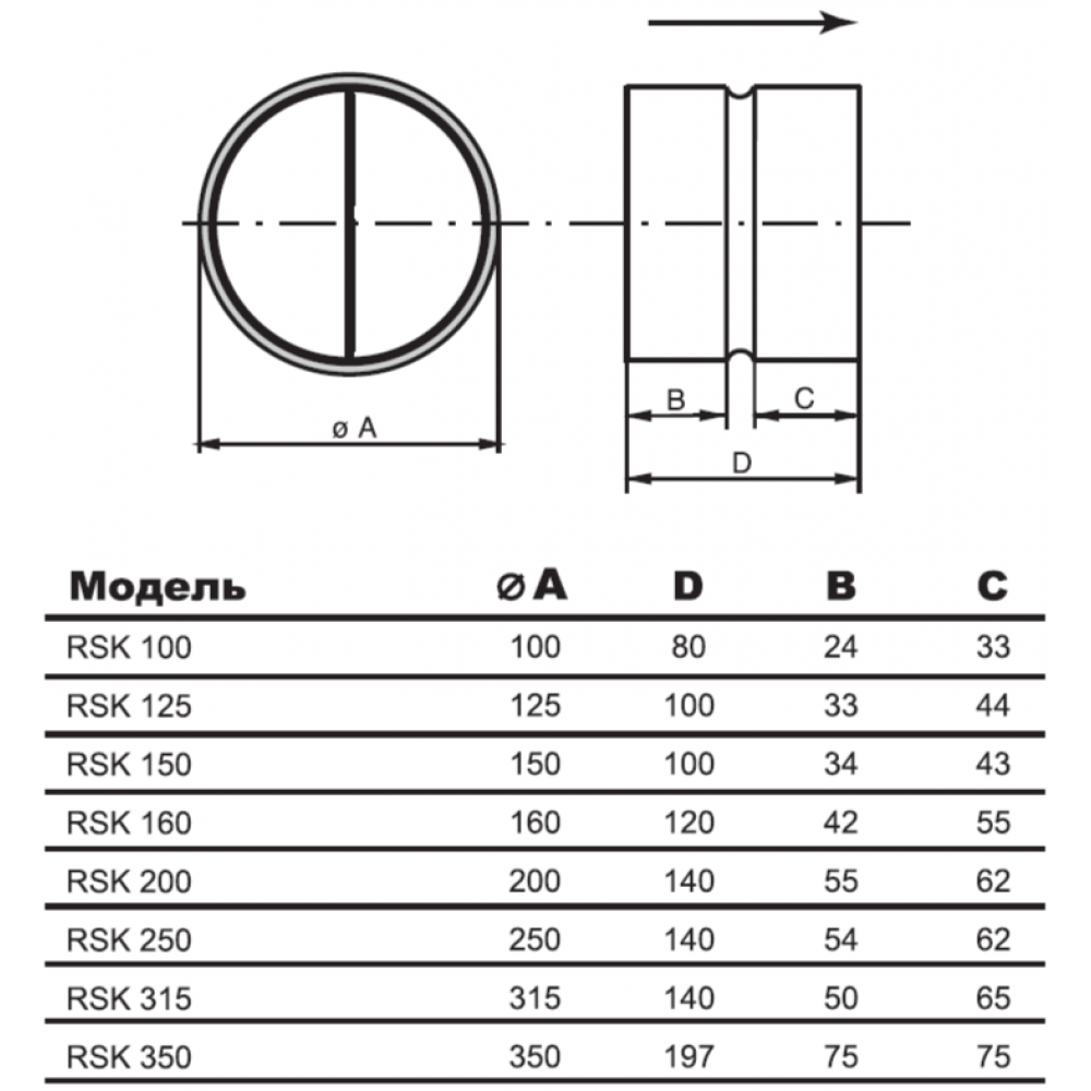 Обратный клапан для круглых каналов Airone RSK 250