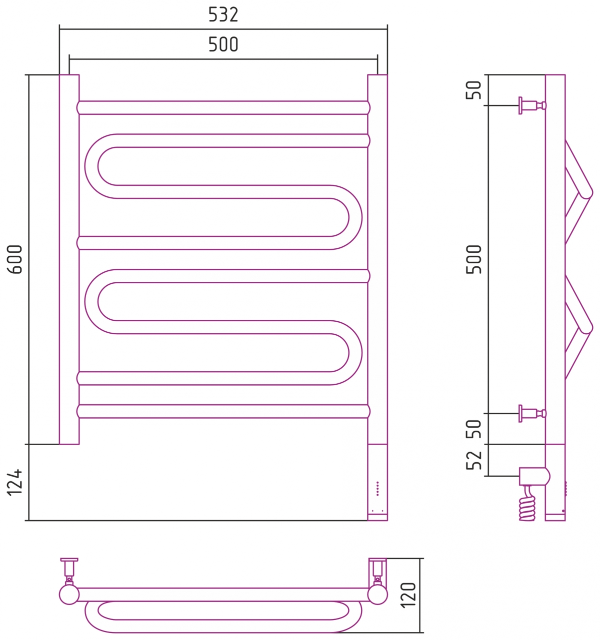 Полотенцесушитель электрический Сунержа Элегия 3.0 600x500