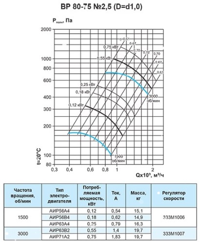 Вентилятор радиальный ВР 80-75 №2,5 (0,25кВт/1500об) Низкого давления